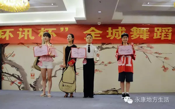 通過將近5個小時的激烈比賽,最終劉倩脫穎而出,榮獲“永康舞王”稱號和榮譽(yù)獎杯,獎金4999元,獎品(萬福影院貴賓卡、天目琴行1580元吉他+課程、80印象880元寫真券);