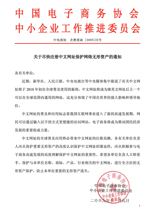 關(guān)于盡快注冊中文域名和通用網(wǎng)址的通知